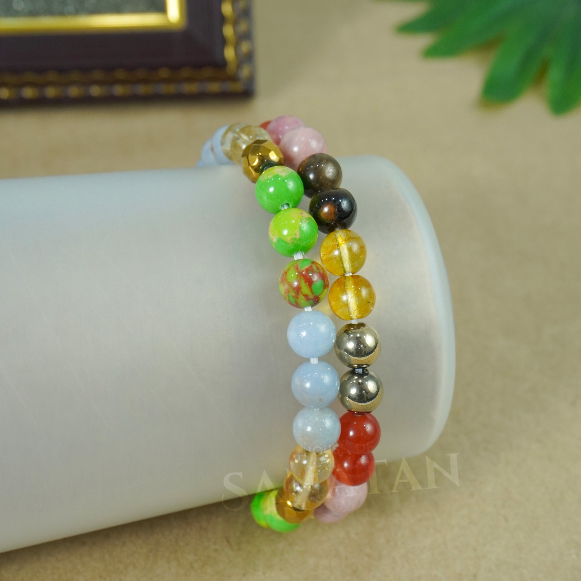 Crafted specifically for Dhanu Rashi (♐ Sagittarius) natives, this bracelet combo connects you with your ruling planet — Guru (Jupiter) 🪄, the planet of wisdom, expansion, and divine blessings. When aligned correctly, Jupiter enhances your spiritual growth, positivity, and life purpose. This bracelet empowers Sagittarius souls to walk their path with clarity and grace.