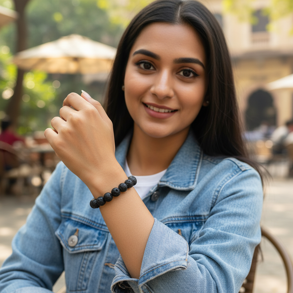 The natural texture and energetic resonance of lava stone help reduce tension, soothe nerves and promote a sense of calm focus throughout the day.
