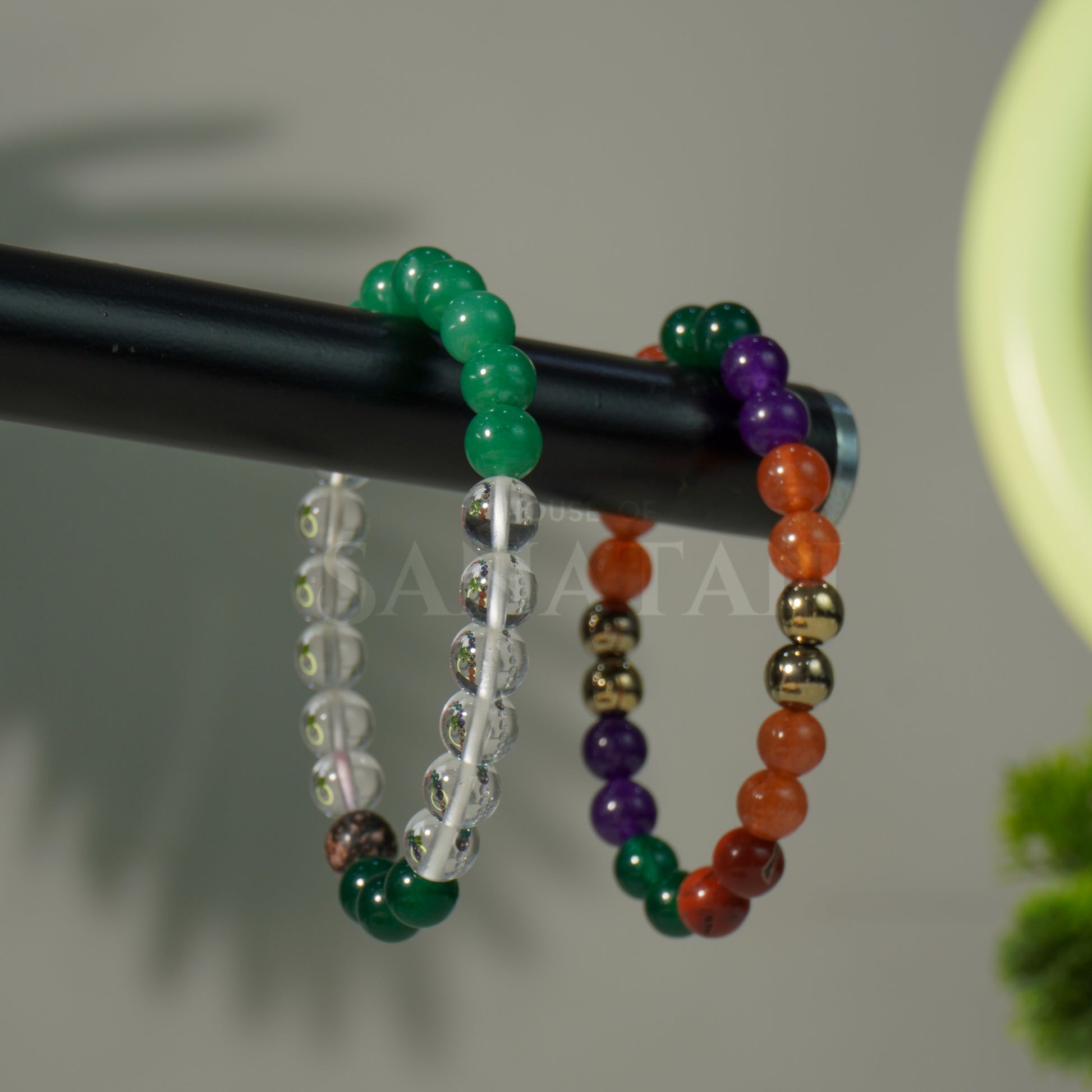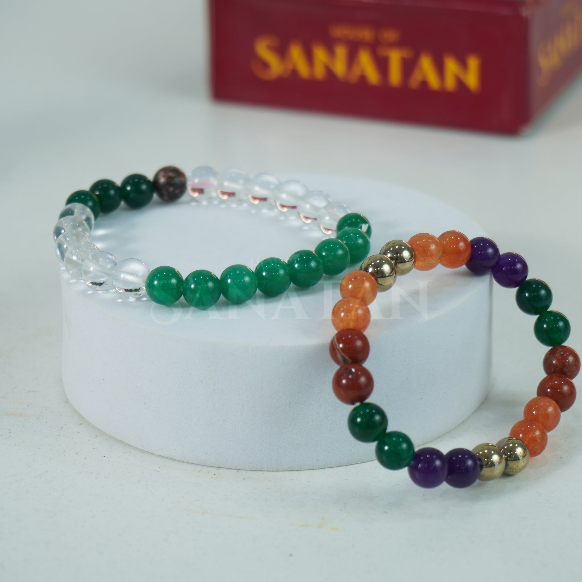 This potent bracelet combo is specially crafted for Mesha Rashi (β Aries) natives, ruled by the fiery and action-driven planet Mangal (Mars) π΄. Mars represents energy, courage, willpower, and leadership. When balanced, this combo brings out your bold nature, decisive mindset, and warrior spirit, aligning you with your natural strengths and life purpose.