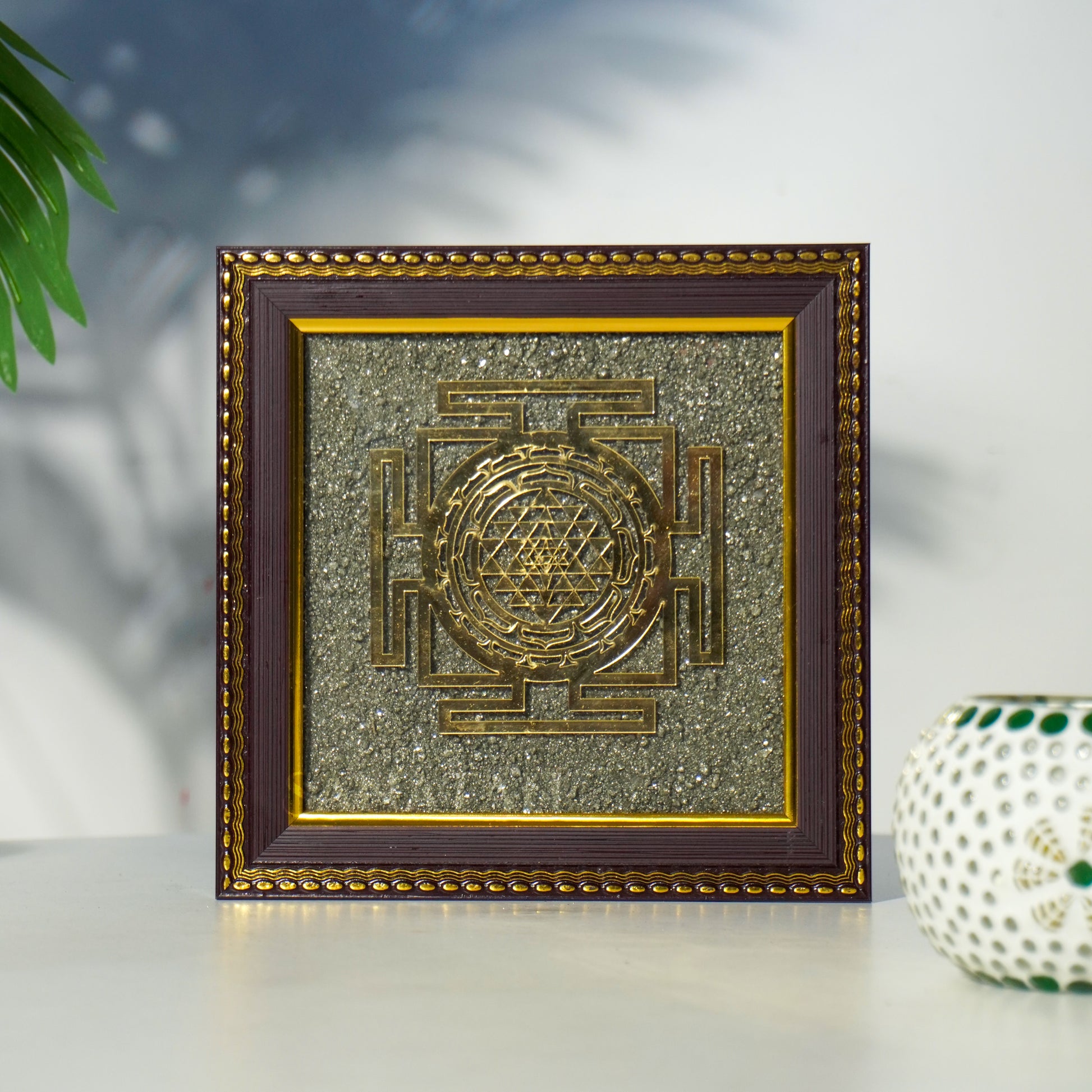 ✨ Shop now and invite divine abundance with the Pyrite Shree Yantra Frame from House of Sanatan.