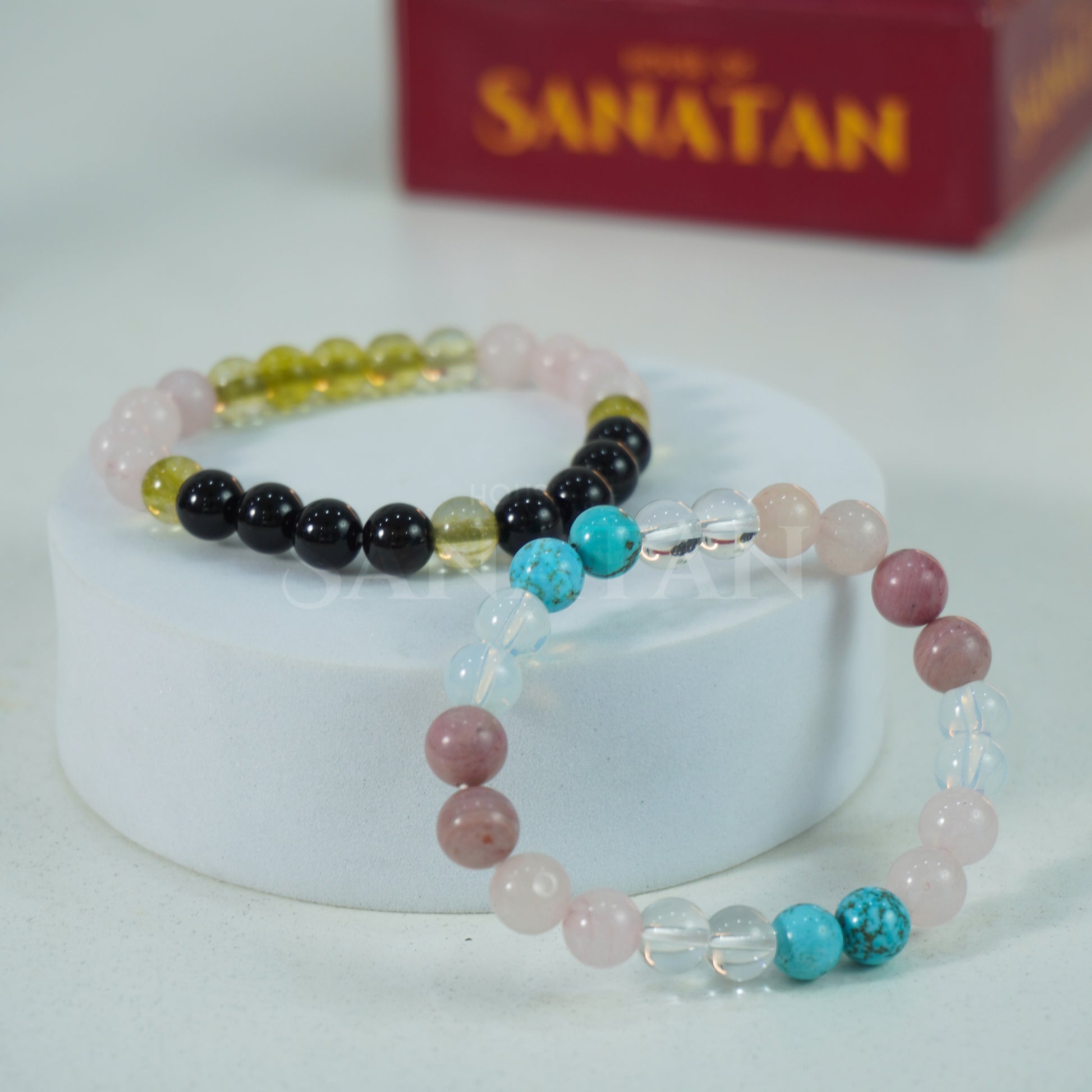 Created for Tula Rashi (♎ Libra) natives, this bracelet combo is infused with the energy of their ruling planet — Shukra (Venus) 💕. Venus governs love, harmony, relationships, beauty, and abundance. This combination supports Librans in embracing their true nature: balanced, elegant, creative, and compassionate.