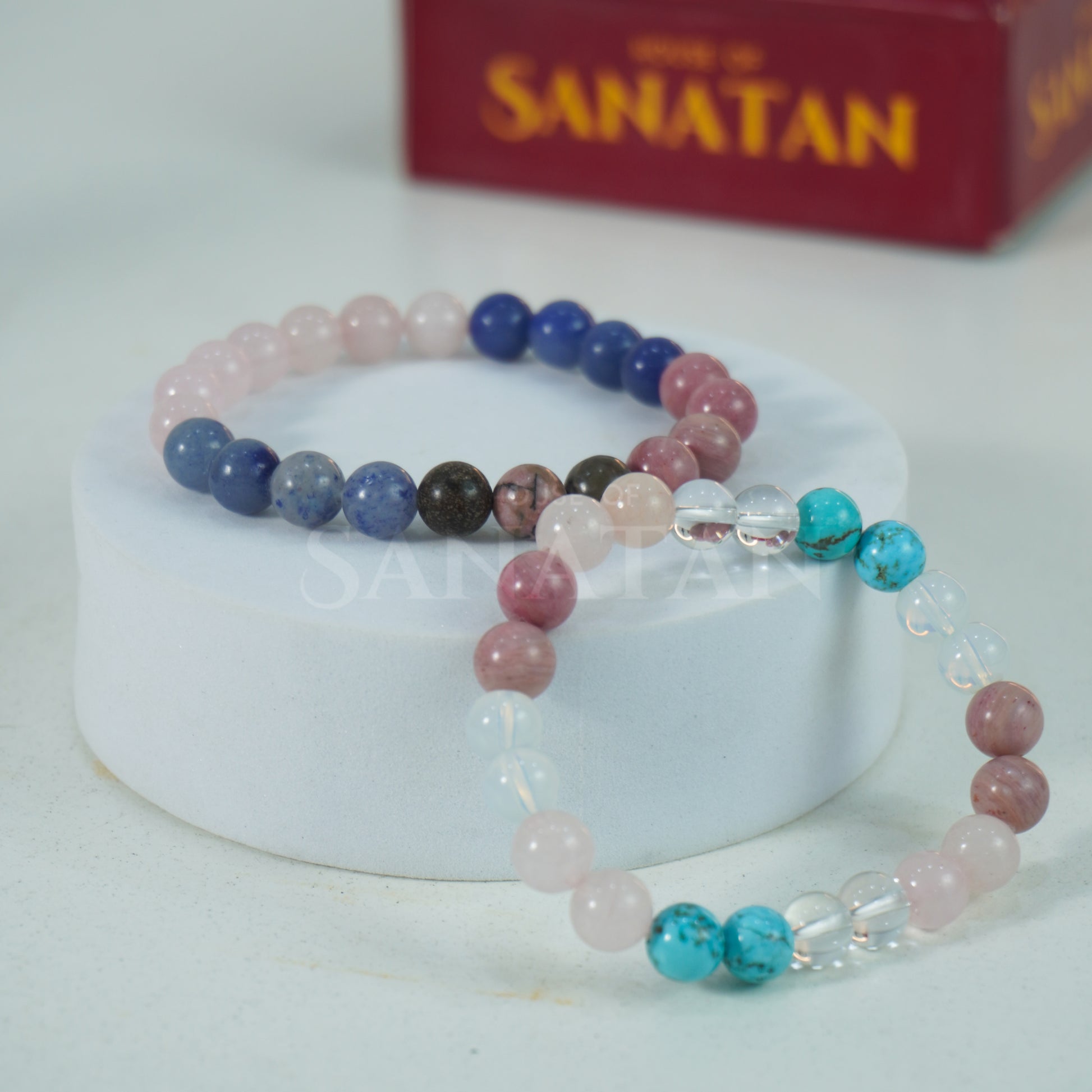 This elegant bracelet combo is specially designed for Vrishabha Rashi (β Taurus) natives, ruled by the planet of love and luxury β Shukra (Venus) π. Venus governs beauty, relationships, wealth, creativity, and harmony. This bracelet aligns you with Shukraβs graceful energy, enhancing both your inner peace and outer success.